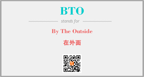 英文缩略词“BTO”经常作为“By The Outside”的英文缩写来使用,中文表示:“在外面”。本文将详细介绍英文缩写词BTO所代表英文单词,其对应的中文拼音、详细解释以及在英语中的流行度。此外,还有关于缩略词BTO的分类、应用领域及相关应用示例等。