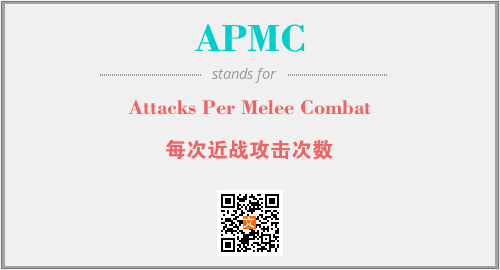 上述内容是“Attacks Per Melee Combat”作为“APMC”的缩写,解释为“每次近战攻击次数”时的信息,以及英文缩略词APMC所代表的英文单词,其对应的中文拼音、详细解释以及在英文中的流行度和相关分类、应用领域及应用示例等。