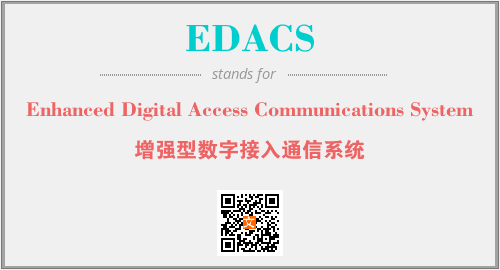 上述内容是“Enhanced Digital Access Communications System”作为“EDACS”的缩写,解释为“增强型数字接入通信系统”时的信息,以及英文缩略词EDACS所代表的英文单词,其对应的中文拼音、详细解释以及在英文中的流行度和相关分类、应用领域及应用示例等。