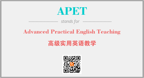 以上为Advanced Practical English Teaching英文缩略词APET的中文解释,以及该英文缩写在英语的流行度、分类和应用领域方面的信息。