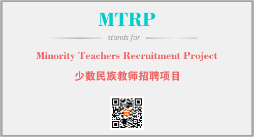 英文缩略词“MTRP”经常作为“Minority Teachers Recruitment Project”的英文缩写来使用,中文表示:“少数民族教师招聘项目”。本文将详细介绍英文缩写词MTRP所代表英文单词,其对应的中文拼音、详细解释以及在英语中的流行度。此外,还有关于缩略词MTRP的分类、应用领域及相关应用示例等。