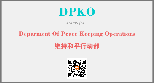 上述内容是“Deparment Of Peace Keeping Operations”作为“DPKO”的缩写,解释为“维持和平行动部”时的信息,以及英文缩略词DPKO所代表的英文单词,其对应的中文拼音、详细解释以及在英文中的流行度和相关分类、应用领域及应用示例等。