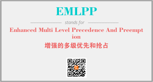 英文缩略词“EMLPP”经常作为“Enhanced Multi Level Precedence And Preemption”的英文缩写来使用,中文表示:“增强的多级优先和抢占”。本文将详细介绍英文缩写词EMLPP所代表英文单词,其对应的中文拼音、详细解释以及在英语中的流行度。此外,还有关于缩略词EMLPP的分类、应用领域及相关应用示例等。