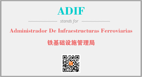 上述内容是“Administrador De Infraestructuras Ferroviarias”作为“ADIF”的缩写,解释为“铁基础设施管理局”时的信息,以及英文缩略词ADIF所代表的英文单词,其对应的中文拼音、详细解释以及在英文中的流行度和相关分类、应用领域及应用示例等。