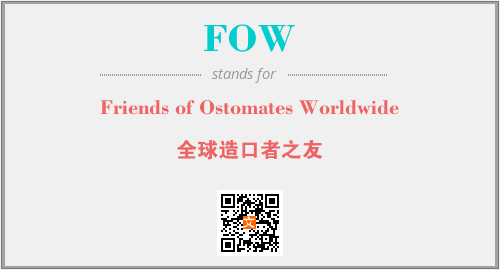 英文缩略词“FOW”经常作为“Friends of Ostomates Worldwide”的英文缩写来使用,中文表示:“全球造口者之友”。本文将详细介绍英文缩写词FOW所代表英文单词,其对应的中文拼音、详细解释以及在英语中的流行度。此外,还有关于缩略词FOW的分类、应用领域及相关应用示例等。