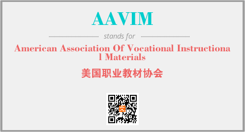 上述内容是“American Association Of Vocational Instructional Materials”作为“AAVIM”的缩写,解释为“美国职业教材协会”时的信息,以及英文缩略词AAVIM所代表的英文单词,其对应的中文拼音、详细解释以及在英文中的流行度和相关分类、应用领域及应用示例等。