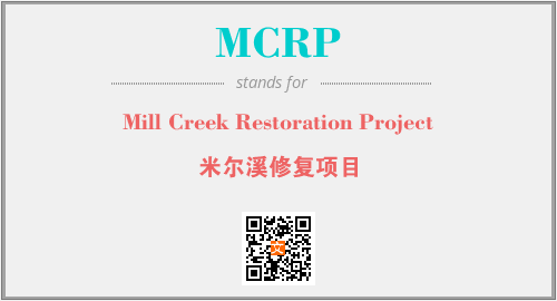 英文缩略词“MCRP”经常作为“Mill Creek Restoration Project”的英文缩写来使用,中文表示:“米尔溪修复项目”。本文将详细介绍英文缩写词MCRP所代表英文单词,其对应的中文拼音、详细解释以及在英语中的流行度。此外,还有关于缩略词MCRP的分类、应用领域及相关应用示例等。