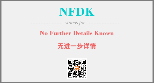 上述内容是“No Further Details Known”作为“NFDK”的缩写,解释为“无进一步详情”时的信息,以及英文缩略词NFDK所代表的英文单词,其对应的中文拼音、详细解释以及在英文中的流行度和相关分类、应用领域及应用示例等。