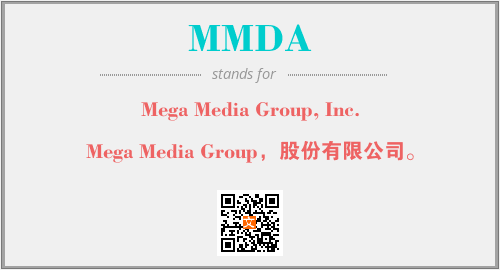 上述内容是“Mega Media Group, Inc.”作为“MMDA”的缩写,解释为“Mega Media Group,股份有限公司。”时的信息,以及英文缩略词MMDA所代表的英文单词,其对应的中文拼音、详细解释以及在英文中的流行度和相关分类、应用领域及应用示例等。