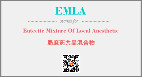 英文缩略词“EMLA”经常作为“Eutectic Mixture Of Local Anesthetic”的英文缩写来使用,中文表示:“局麻药共晶混合物”。本文将详细介绍英文缩写词EMLA所代表英文单词,其对应的中文拼音、详细解释以及在英语中的流行度。此外,还有关于缩略词EMLA的分类、应用领域及相关应用示例等。