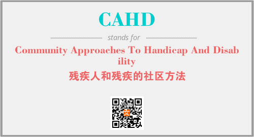 英文缩略词“CAHD”经常作为“Community Approaches To Handicap And Disability”的英文缩写来使用,中文表示:“残疾人和残疾的社区方法”。本文将详细介绍英文缩写词CAHD所代表英文单词,其对应的中文拼音、详细解释以及在英语中的流行度。此外,还有关于缩略词CAHD的分类、应用领域及相关应用示例等。