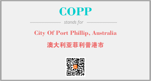 以上为City Of Port Phillip, Australia英文缩略词COPP的中文解释,以及该英文缩写在英语的流行度、分类和应用领域方面的信息。