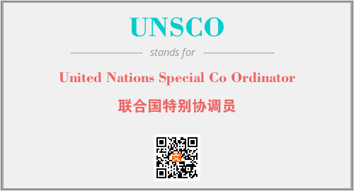 英文缩略词“UNSCO”经常作为“United Nations Special Co Ordinator”的英文缩写来使用,中文表示:“联合国特别协调员”。本文将详细介绍英文缩写词UNSCO所代表英文单词,其对应的中文拼音、详细解释以及在英语中的流行度。此外,还有关于缩略词UNSCO的分类、应用领域及相关应用示例等。