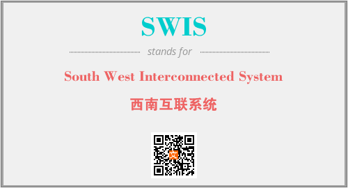 上述内容是“South West Interconnected System”作为“SWIS”的缩写,解释为“西南互联系统”时的信息,以及英文缩略词SWIS所代表的英文单词,其对应的中文拼音、详细解释以及在英文中的流行度和相关分类、应用领域及应用示例等。