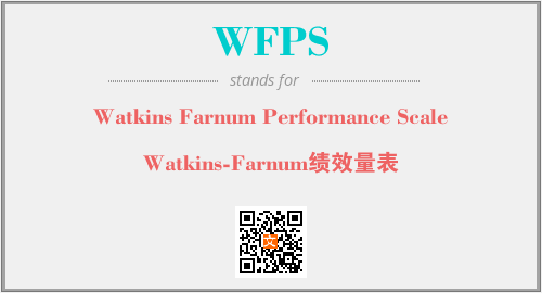 上述内容是“Watkins Farnum Performance Scale”作为“WFPS”的缩写,解释为“Watkins-Farnum绩效量表”时的信息,以及英文缩略词WFPS所代表的英文单词,其对应的中文拼音、详细解释以及在英文中的流行度和相关分类、应用领域及应用示例等。