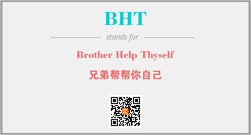 上述内容是“Brother Help Thyself”作为“BHT”的缩写,解释为“兄弟帮帮你自己”时的信息,以及英文缩略词BHT所代表的英文单词,其对应的中文拼音、详细解释以及在英文中的流行度和相关分类、应用领域及应用示例等。