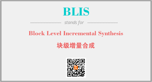 上述内容是“Block Level Incremental Synthesis”作为“BLIS”的缩写,解释为“块级增量合成”时的信息,以及英文缩略词BLIS所代表的英文单词,其对应的中文拼音、详细解释以及在英文中的流行度和相关分类、应用领域及应用示例等。