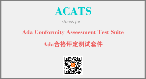 上述内容是“Ada Conformity Assessment Test Suite”作为“ACATS”的缩写,解释为“Ada合格评定测试套件”时的信息,以及英文缩略词ACATS所代表的英文单词,其对应的中文拼音、详细解释以及在英文中的流行度和相关分类、应用领域及应用示例等。