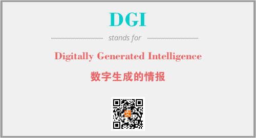 上述内容是“Digitally Generated Intelligence”作为“DGI”的缩写,解释为“数字生成的情报”时的信息,以及英文缩略词DGI所代表的英文单词,其对应的中文拼音、详细解释以及在英文中的流行度和相关分类、应用领域及应用示例等。