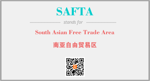 英文缩略词“SAFTA”经常作为“South Asian Free Trade Area”的英文缩写来使用,中文表示:“南亚自由贸易区”。本文将详细介绍英文缩写词SAFTA所代表英文单词,其对应的中文拼音、详细解释以及在英语中的流行度。此外,还有关于缩略词SAFTA的分类、应用领域及相关应用示例等。