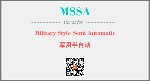 英文缩略词“MSSA”经常作为“Military Style Semi Automatic”的英文缩写来使用,中文表示:“军用半自动”。本文将详细介绍英文缩写词MSSA所代表英文单词,其对应的中文拼音、详细解释以及在英语中的流行度。此外,还有关于缩略词MSSA的分类、应用领域及相关应用示例等。