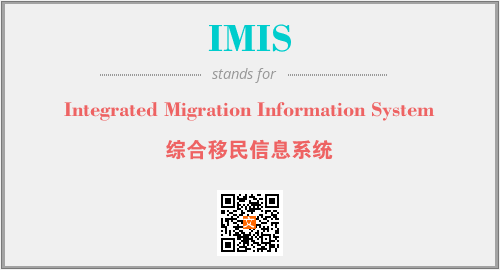 英文缩略词“IMIS”经常作为“Integrated Migration Information System”的英文缩写来使用,中文表示:“综合移民信息系统”。本文将详细介绍英文缩写词IMIS所代表英文单词,其对应的中文拼音、详细解释以及在英语中的流行度。此外,还有关于缩略词IMIS的分类、应用领域及相关应用示例等。