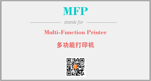 英文缩略词“MFP”经常作为“Multi-Function Printer”的英文缩写来使用,中文表示:“多功能打印机”。本文将详细介绍英文缩写词MFP所代表英文单词,其对应的中文拼音、详细解释以及在英语中的流行度。此外,还有关于缩略词MFP的分类、应用领域及相关应用示例等。