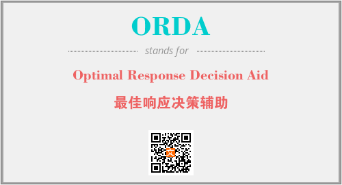 上述内容是“Optimal Response Decision Aid”作为“ORDA”的缩写,解释为“最佳响应决策辅助”时的信息,以及英文缩略词ORDA所代表的英文单词,其对应的中文拼音、详细解释以及在英文中的流行度和相关分类、应用领域及应用示例等。