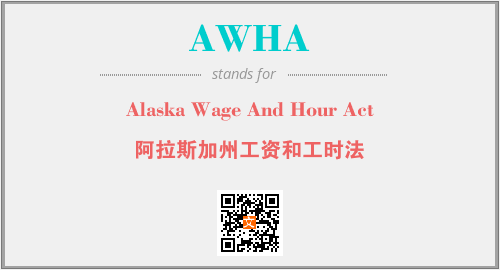 上述内容是“Alaska Wage And Hour Act”作为“AWHA”的缩写,解释为“阿拉斯加州工资和工时法”时的信息,以及英文缩略词AWHA所代表的英文单词,其对应的中文拼音、详细解释以及在英文中的流行度和相关分类、应用领域及应用示例等。