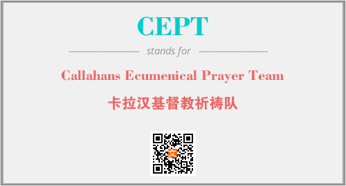 英文缩略词“CEPT”经常作为“Callahans Ecumenical Prayer Team”的英文缩写来使用,中文表示:“卡拉汉基督教祈祷队”。本文将详细介绍英文缩写词CEPT所代表英文单词,其对应的中文拼音、详细解释以及在英语中的流行度。此外,还有关于缩略词CEPT的分类、应用领域及相关应用示例等。