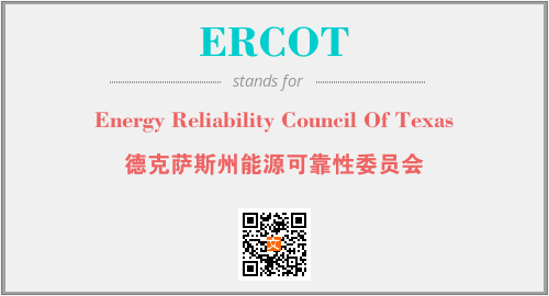 英文缩略词“ERCOT”经常作为“Energy Reliability Council Of Texas”的英文缩写来使用,中文表示:“德克萨斯州能源可靠性委员会”。本文将详细介绍英文缩写词ERCOT所代表英文单词,其对应的中文拼音、详细解释以及在英语中的流行度。此外,还有关于缩略词ERCOT的分类、应用领域及相关应用示例等。