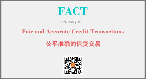 以上为Fair and Accurate Credit Transactions英文缩略词FACT的中文解释,以及该英文缩写在英语的流行度、分类和应用领域方面的信息。