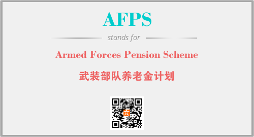 上述内容是“Armed Forces Pension Scheme”作为“AFPS”的缩写,解释为“武装部队养老金计划”时的信息,以及英文缩略词AFPS所代表的英文单词,其对应的中文拼音、详细解释以及在英文中的流行度和相关分类、应用领域及应用示例等。
