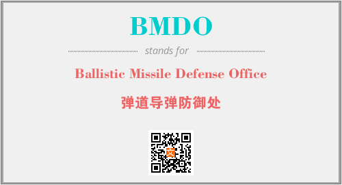 英文缩略词“BMDO”经常作为“Ballistic Missile Defense Office”的英文缩写来使用,中文表示:“弹道导弹防御处”。本文将详细介绍英文缩写词BMDO所代表英文单词,其对应的中文拼音、详细解释以及在英语中的流行度。此外,还有关于缩略词BMDO的分类、应用领域及相关应用示例等。
