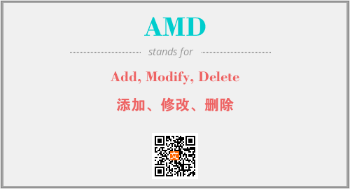 英文缩略词“AMD”经常作为“Add, Modify, Delete”的英文缩写来使用,中文表示:“添加、修改、删除”。本文将详细介绍英文缩写词AMD所代表英文单词,其对应的中文拼音、详细解释以及在英语中的流行度。此外,还有关于缩略词AMD的分类、应用领域及相关应用示例等。