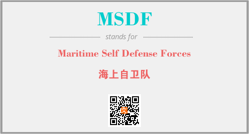 英文缩略词“MSDF”经常作为“Maritime Self Defense Forces”的英文缩写来使用,中文表示:“海上自卫队”。本文将详细介绍英文缩写词MSDF所代表英文单词,其对应的中文拼音、详细解释以及在英语中的流行度。此外,还有关于缩略词MSDF的分类、应用领域及相关应用示例等。
