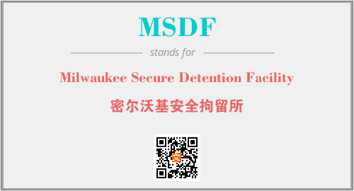 上述内容是“Milwaukee Secure Detention Facility”作为“MSDF”的缩写,解释为“密尔沃基安全拘留所”时的信息,以及英文缩略词MSDF所代表的英文单词,其对应的中文拼音、详细解释以及在英文中的流行度和相关分类、应用领域及应用示例等。