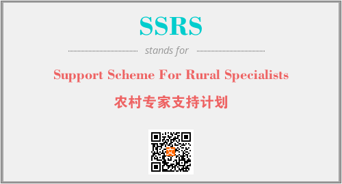上述内容是“Support Scheme For Rural Specialists”作为“SSRS”的缩写,解释为“农村专家支持计划”时的信息,以及英文缩略词SSRS所代表的英文单词,其对应的中文拼音、详细解释以及在英文中的流行度和相关分类、应用领域及应用示例等。