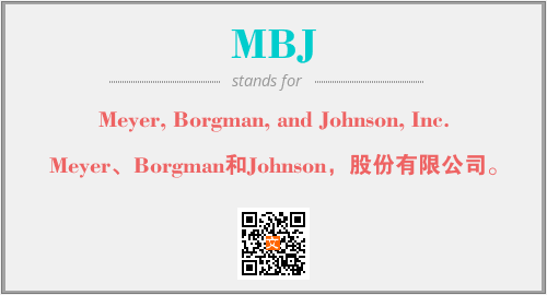 上述内容是“Meyer, Borgman, and Johnson, Inc.”作为“MBJ”的缩写,解释为“Meyer、Borgman和Johnson,股份有限公司。”时的信息,以及英文缩略词MBJ所代表的英文单词,其对应的中文拼音、详细解释以及在英文中的流行度和相关分类、应用领域及应用示例等。