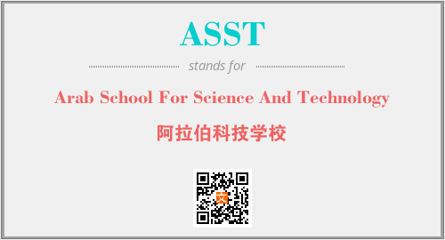 上述内容是“Arab School For Science And Technology”作为“ASST”的缩写,解释为“阿拉伯科技学校”时的信息,以及英文缩略词ASST所代表的英文单词,其对应的中文拼音、详细解释以及在英文中的流行度和相关分类、应用领域及应用示例等。