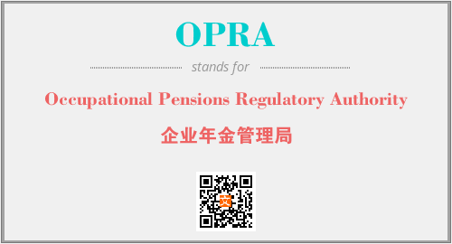 上述内容是“Occupational Pensions Regulatory Authority”作为“OPRA”的缩写,解释为“企业年金管理局”时的信息,以及英文缩略词OPRA所代表的英文单词,其对应的中文拼音、详细解释以及在英文中的流行度和相关分类、应用领域及应用示例等。
