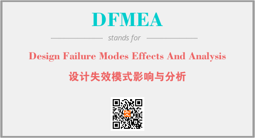 英文缩略词“DFMEA”经常作为“Design Failure Modes Effects And Analysis”的英文缩写来使用,中文表示:“设计失效模式影响与分析”。本文将详细介绍英文缩写词DFMEA所代表英文单词,其对应的中文拼音、详细解释以及在英语中的流行度。此外,还有关于缩略词DFMEA的分类、应用领域及相关应用示例等。