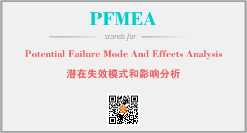 英文缩略词“PFMEA”经常作为“Potential Failure Mode And Effects Analysis”的英文缩写来使用,中文表示:“潜在失效模式和影响分析”。本文将详细介绍英文缩写词PFMEA所代表英文单词,其对应的中文拼音、详细解释以及在英语中的流行度。此外,还有关于缩略词PFMEA的分类、应用领域及相关应用示例等。
