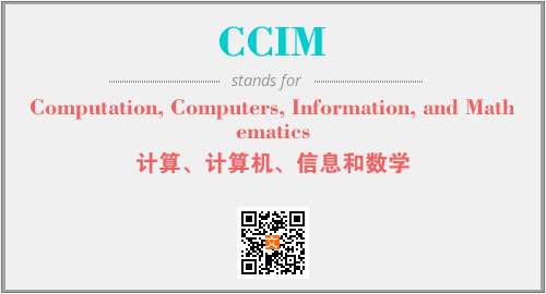 上述内容是“Computation, Computers, Information, and Mathematics”作为“CCIM”的缩写,解释为“计算、计算机、信息和数学”时的信息,以及英文缩略词CCIM所代表的英文单词,其对应的中文拼音、详细解释以及在英文中的流行度和相关分类、应用领域及应用示例等。