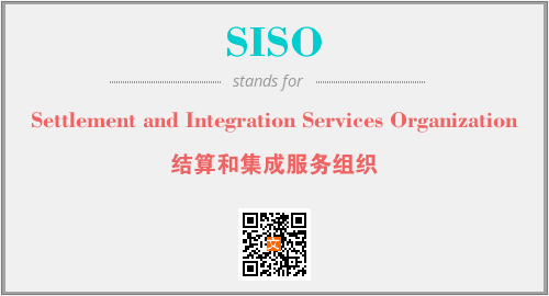 上述内容是“Settlement and Integration Services Organization”作为“SISO”的缩写,解释为“结算和集成服务组织”时的信息,以及英文缩略词SISO所代表的英文单词,其对应的中文拼音、详细解释以及在英文中的流行度和相关分类、应用领域及应用示例等。