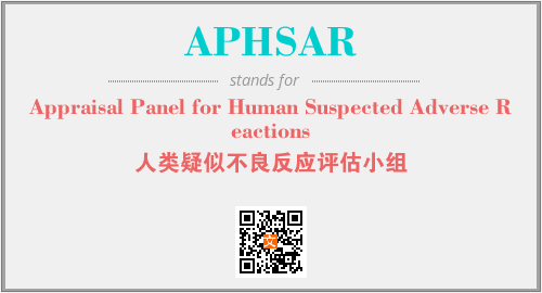 上述内容是“Appraisal Panel for Human Suspected Adverse Reactions”作为“APHSAR”的缩写,解释为“人类疑似不良反应评估小组”时的信息,以及英文缩略词APHSAR所代表的英文单词,其对应的中文拼音、详细解释以及在英文中的流行度和相关分类、应用领域及应用示例等。