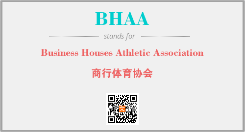 英文缩略词“BHAA”经常作为“Business Houses Athletic Association”的英文缩写来使用,中文表示:“商行体育协会”。本文将详细介绍英文缩写词BHAA所代表英文单词,其对应的中文拼音、详细解释以及在英语中的流行度。此外,还有关于缩略词BHAA的分类、应用领域及相关应用示例等。