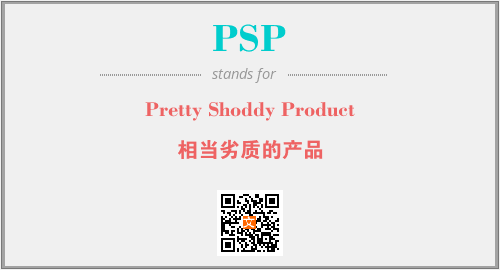 英文缩略词“PSP”经常作为“Pretty Shoddy Product”的英文缩写来使用,中文表示:“相当劣质的产品”。本文将详细介绍英文缩写词PSP所代表英文单词,其对应的中文拼音、详细解释以及在英语中的流行度。此外,还有关于缩略词PSP的分类、应用领域及相关应用示例等。