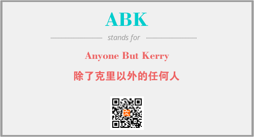 上述内容是“Anyone But Kerry”作为“ABK”的缩写,解释为“除了克里以外的任何人”时的信息,以及英文缩略词ABK所代表的英文单词,其对应的中文拼音、详细解释以及在英文中的流行度和相关分类、应用领域及应用示例等。