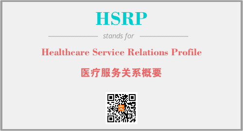 上述内容是“Healthcare Service Relations Profile”作为“HSRP”的缩写,解释为“医疗服务关系概要”时的信息,以及英文缩略词HSRP所代表的英文单词,其对应的中文拼音、详细解释以及在英文中的流行度和相关分类、应用领域及应用示例等。